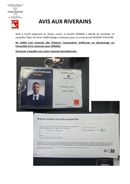 AVIS AUX RIVERAINS DEMARCHAGE ORANGE :